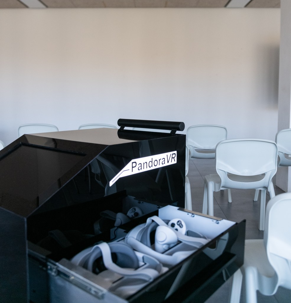 PANDORA VR is a portable solution with a touchscreen and its own Wi-Fi network whose function is to control and monitor each Headset.